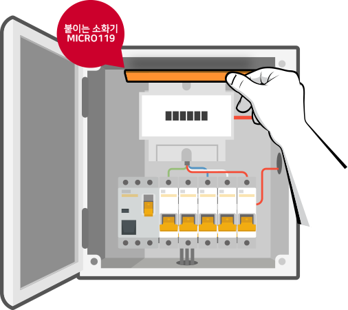 전기판넬에서의 화재 발생 경우를 고려하여 고안된 화재 진압용 패드인 MICRO119는 초기 발화시 즉각적인 반응으로 완벽한 화재 진압을 할 수 있는 냉각 소화 방식의 우수한 특성을 가지고 있습니다.